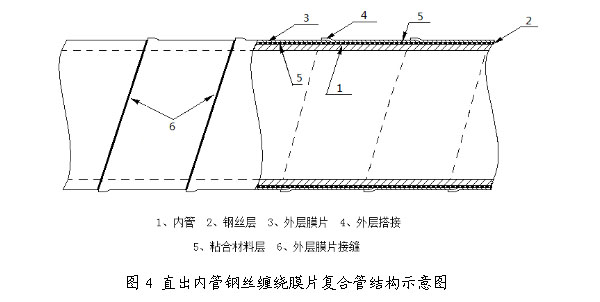 超高分子钢丝网骨架聚乙烯复合管材由直出内管、钢丝和外层球友会体育(中国)官方网站三种材料复合而成,适用于大、中口径的中、高压管。管材在生产时先在超高管材挤出机上直接挤出改性超高分子量聚乙烯内管,然后再在内管上热熔复合钢丝和超高球友会体育(中国)官方网站。管材结构如图4所示。